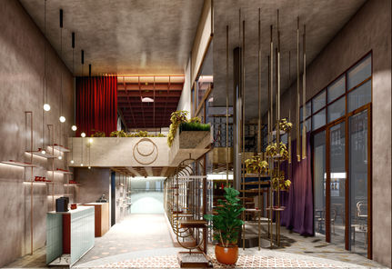 The kitchen and technical areas are positioned in the basement, allowing the ground level to function as an active interface with the street. The corner unit is designed as a cocktail bar, where sliding and folding façade elements dissolve the boundary between interior and exterior, enabling the space to extend into the urban fabric.