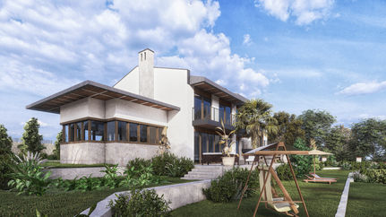 The building is composed of articulated volumes that respond to the scale of family life, avoiding a singular monolithic expression in favor of a fragmented yet cohesive composition. This approach allows the house to open itself to the garden at multiple points, establishing a continuous dialogue between interior and exterior spaces.