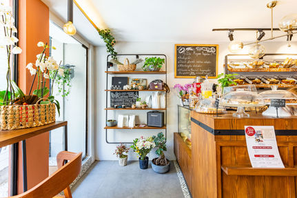 The interior design emphasizes a sense of craftsmanship and intimacy, where the act of making becomes an integral part of the spatial experience. The main counter, combining warm timber surfaces with transparent display elements, functions as both a production interface and a focal point, allowing products to be presented with clarity and care.